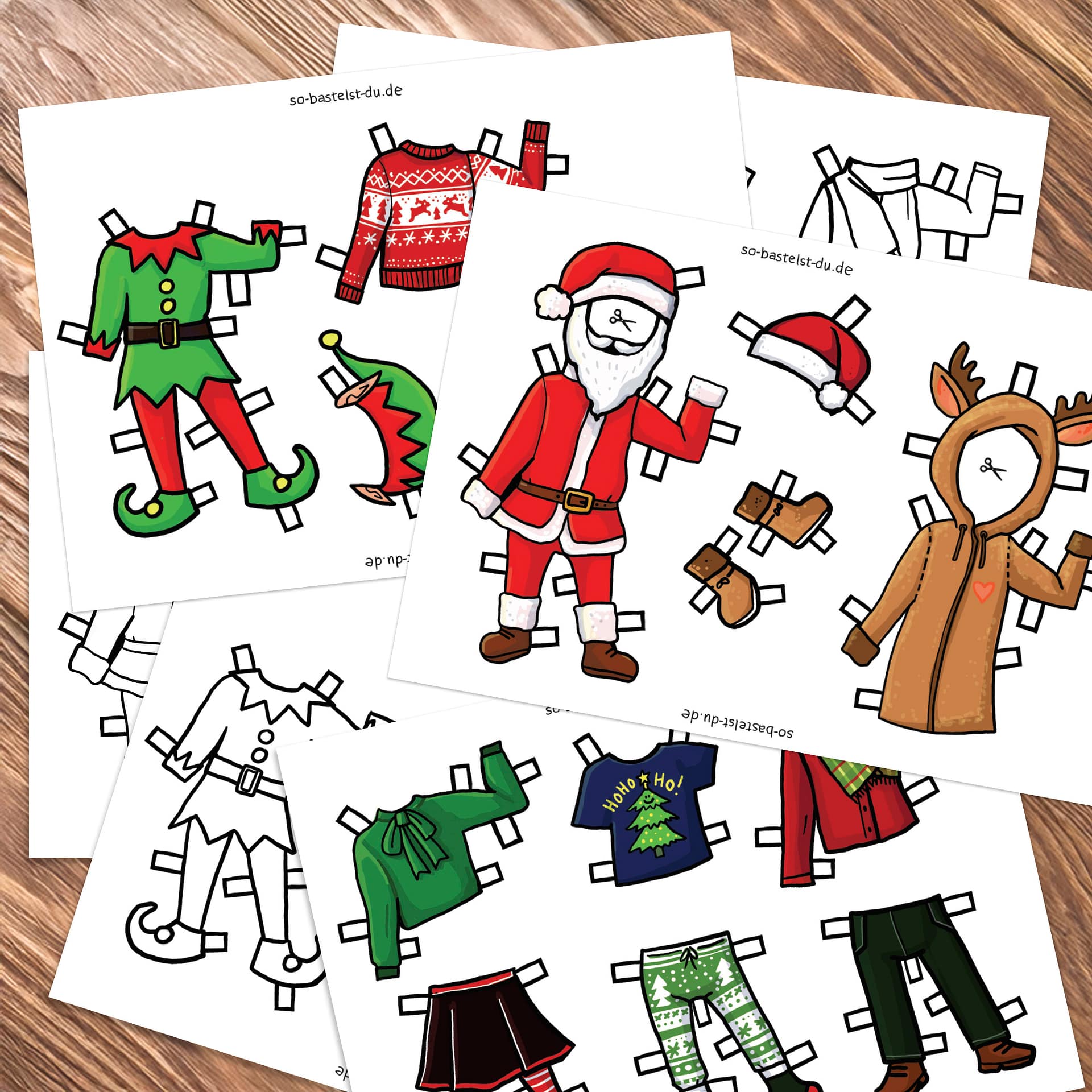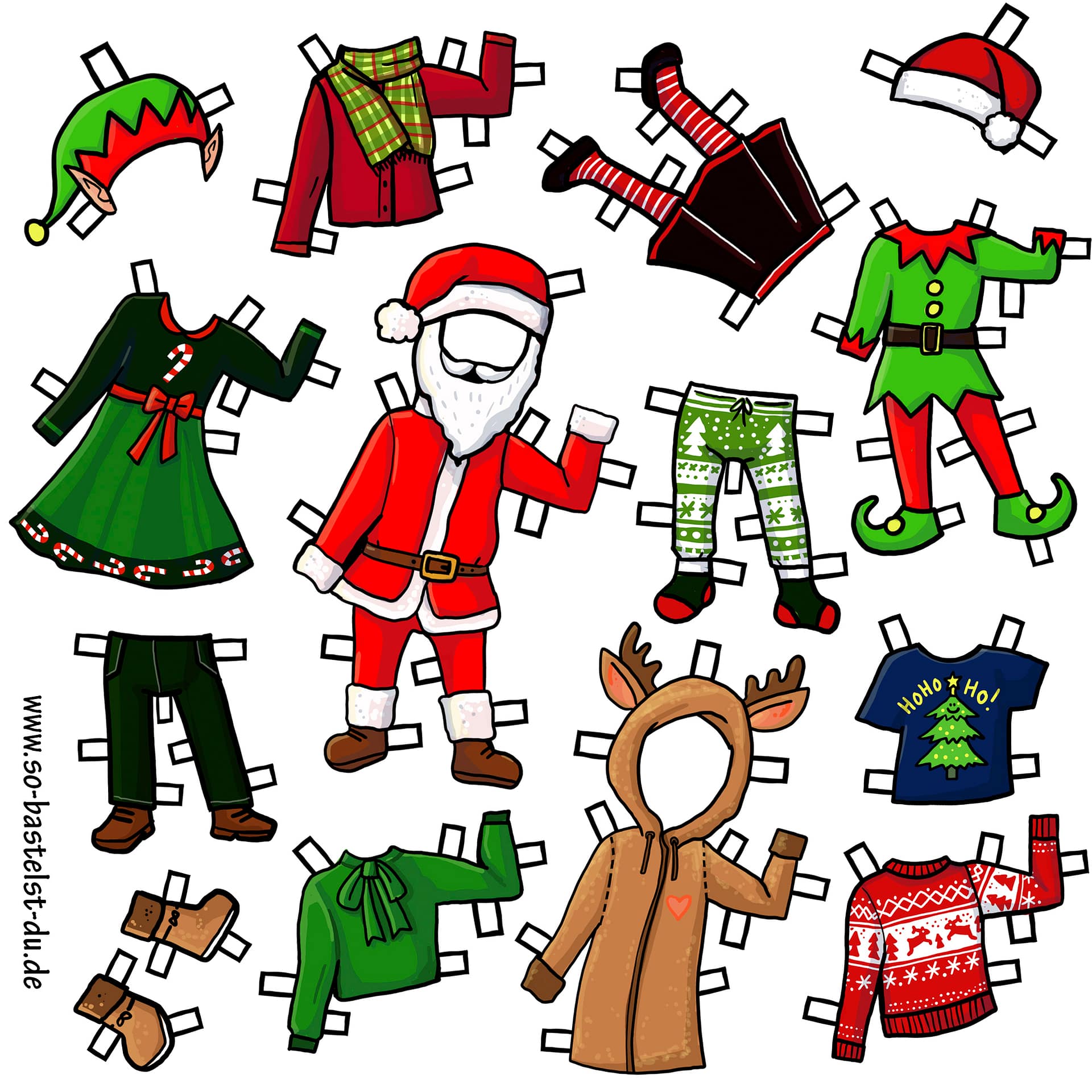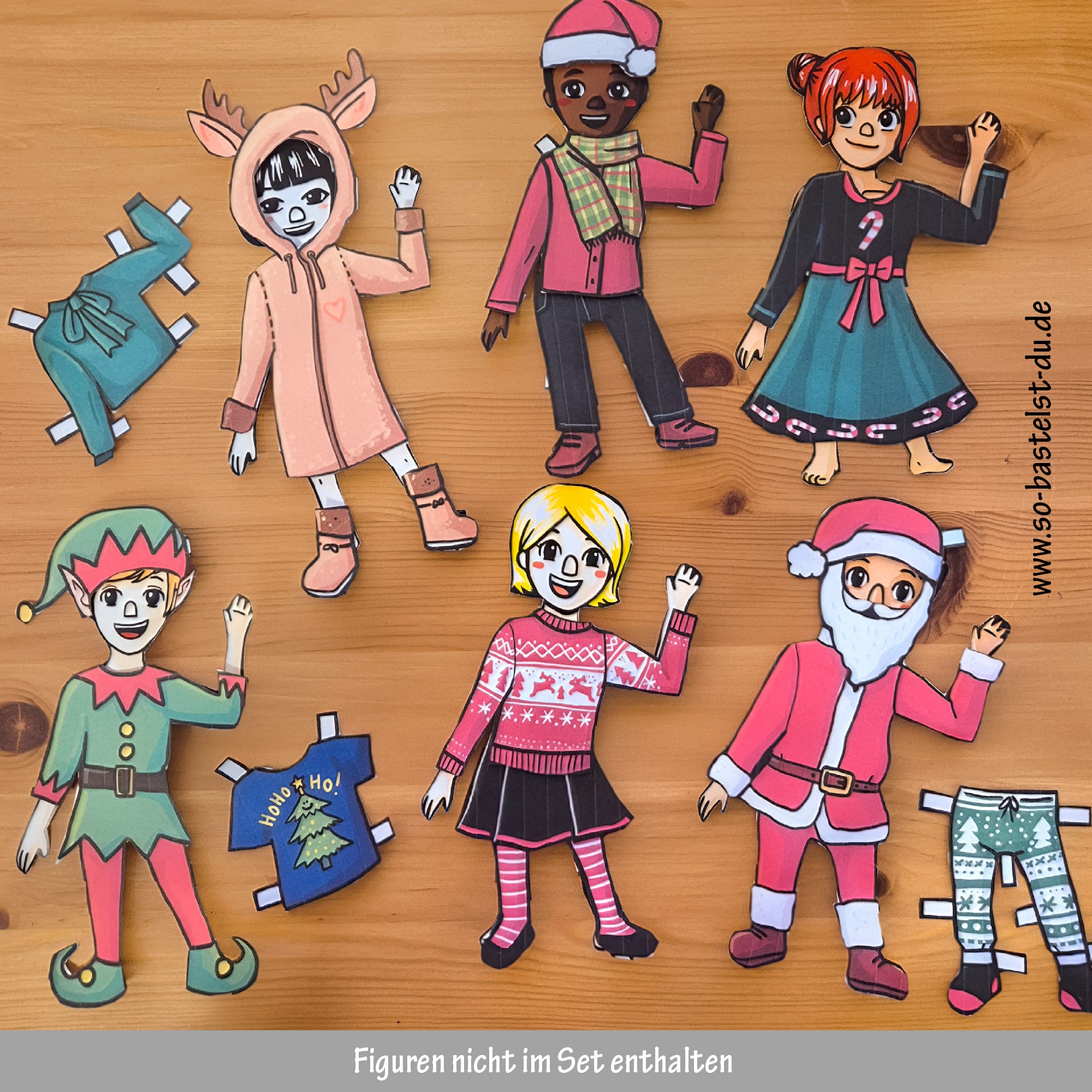 Achtung: Dieses Set beinhaltet nur die weihnachtlichen Kleidungsstücke - die passenden Papierfiguren zum Anziehen gibt es separat im Bastelshop.