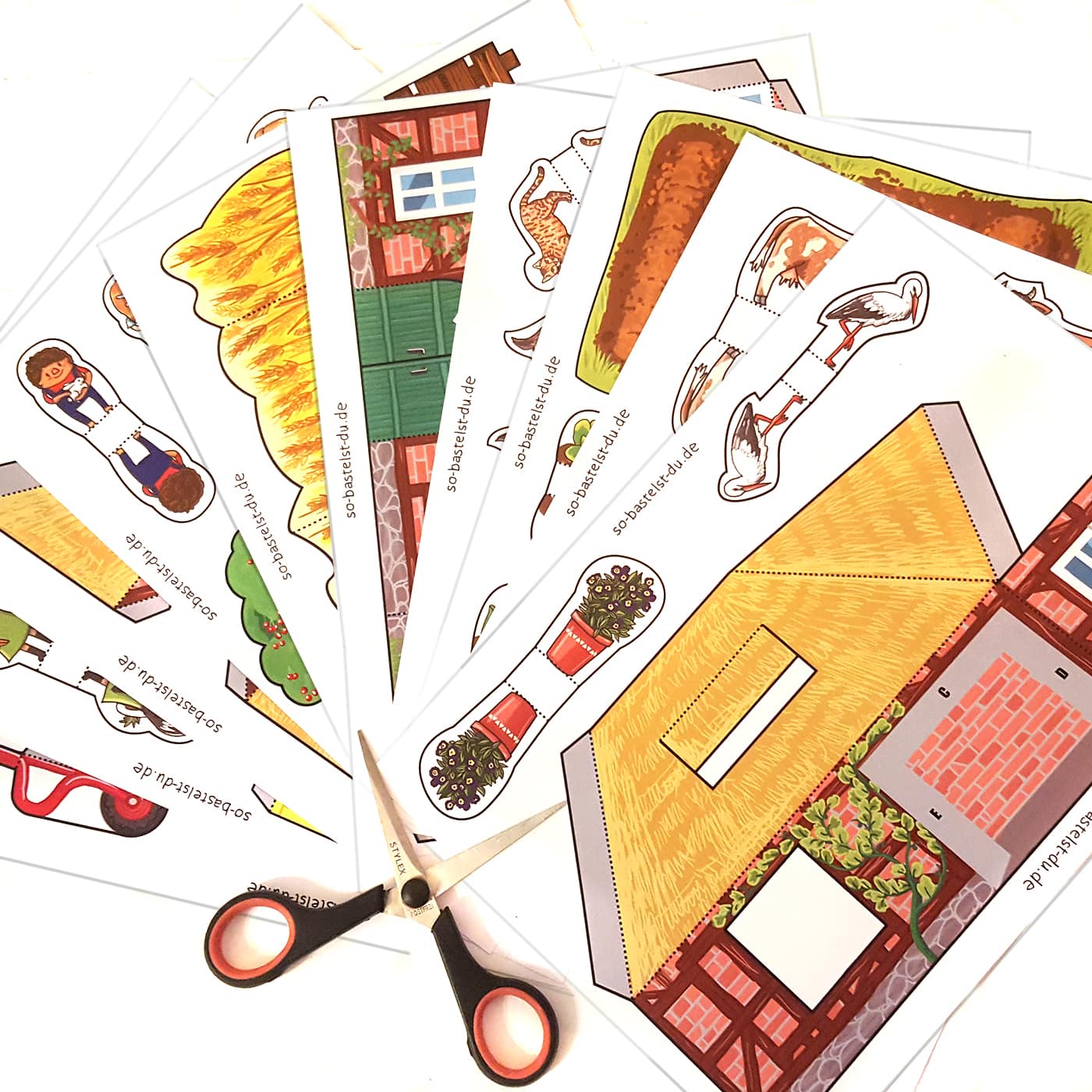 Der 10-seitige Bauernhof-Bastelbogen enthält: