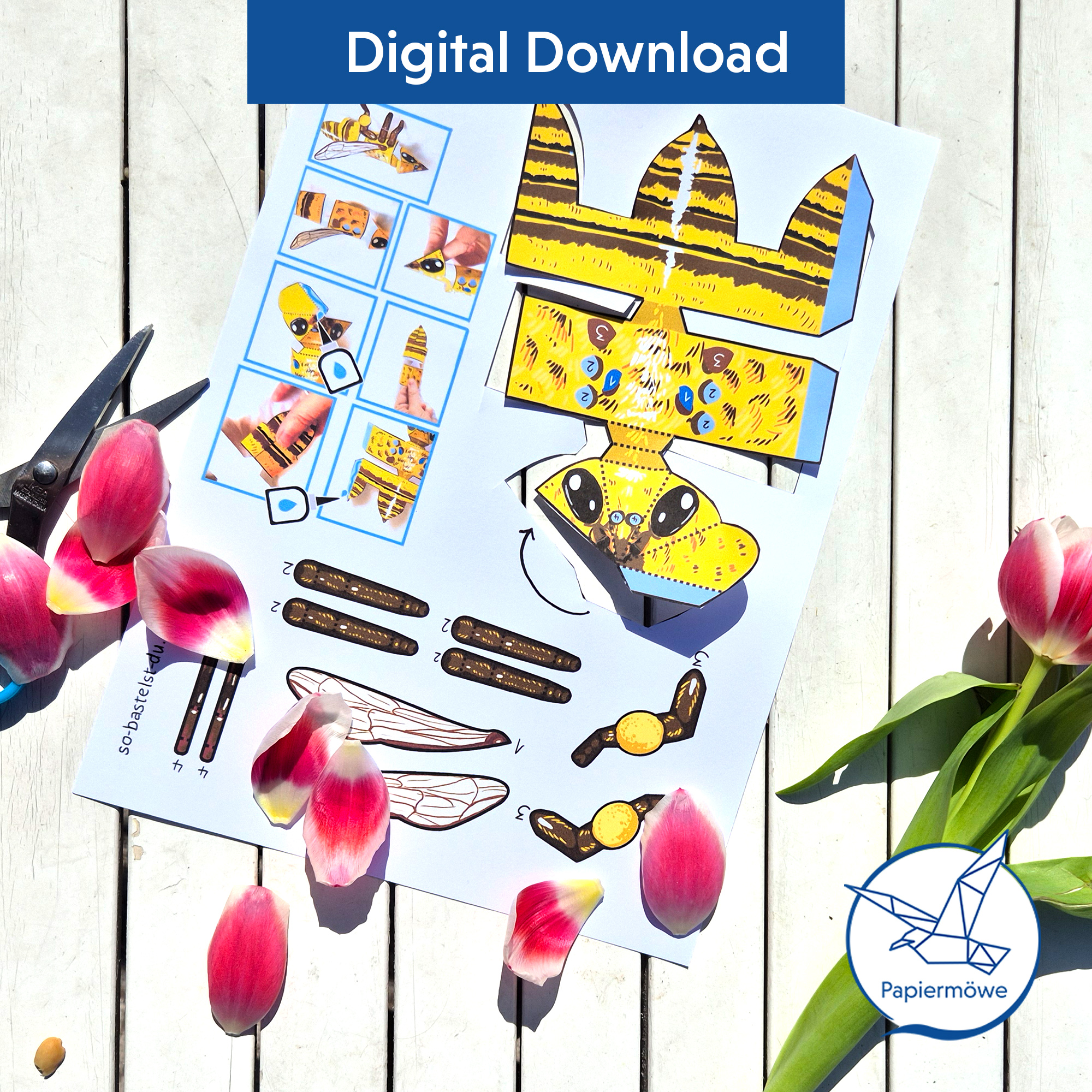Übrigens: Mit dem Komplettpaket Insekten bekommst du alle vier Bastelbögen Insekten zum günstigen Kombipreis.
