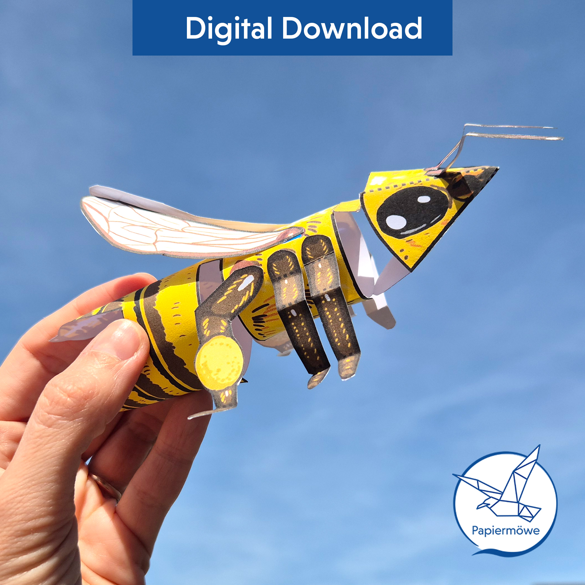 Großes Modell einer Biene zum selbst Ausdrucken und Basteln aus Papier für die Schule und Daheim: Mit diesem Bastelbogen kann ein detailliertes Modell einer Biene gebastelt werden. Die Bastelei ist geeignet für ältere Grundschulkinder aufwärts.