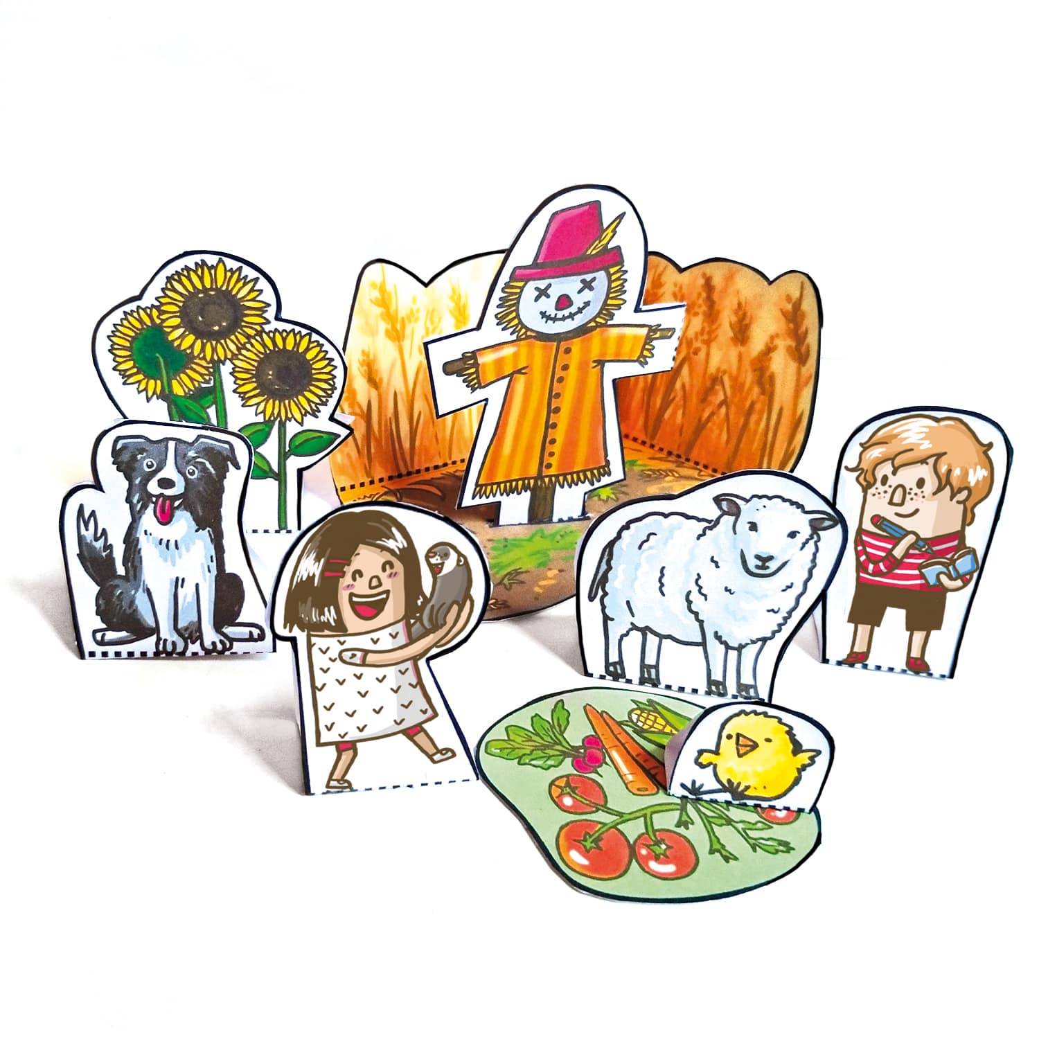 Wie du wahrscheinlich schon bemerkt hast, sind die meisten unserer Bastelbögen miteinander kompatibel. Das bedeutet, sie können ohne Probleme zusammen getan werden. Krea und Tivo könnten zum Beispiel durch eine Herbstlandschaft laufen und die Menschen dort kennen lernen. Oder machen sie vielleicht doch einen Ausflug in den Wald? Oder sie besuchen den Bauernhof Sonnental für mehr Tiere und die nette Bäuerin Bertha?
