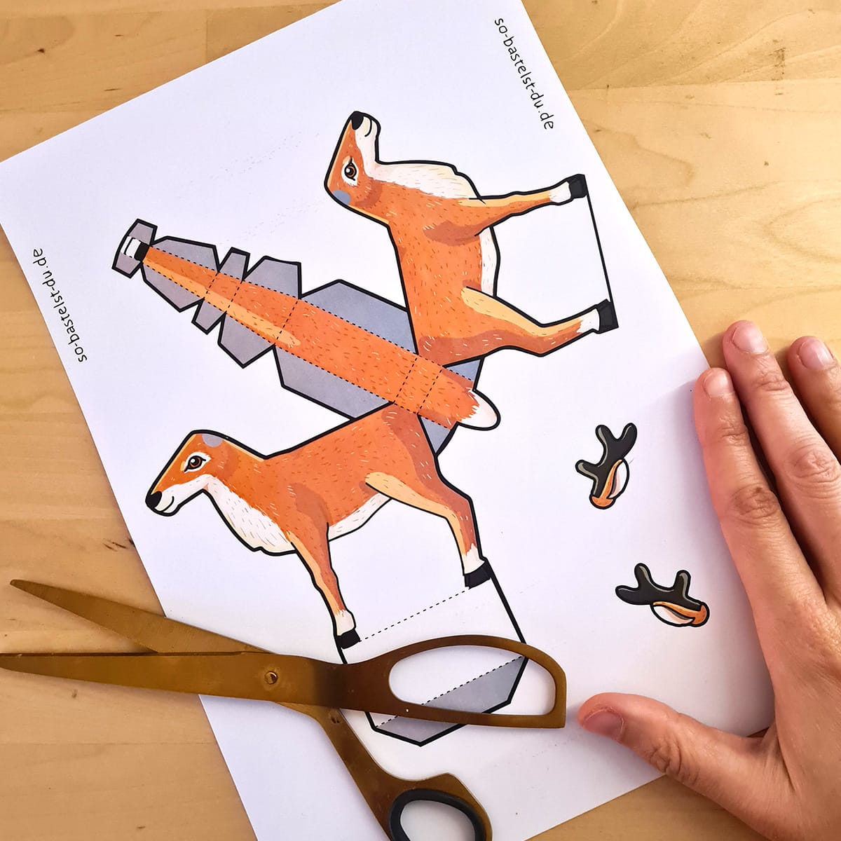 Die klaren Schritt-für-Schritt-Anweisungen auf der beigefügten PDF-Anleitung führen die Kinder durch den Bastelprozess, indem sie die ausgedruckten Teile ausschneiden und passend zusammenfügen.