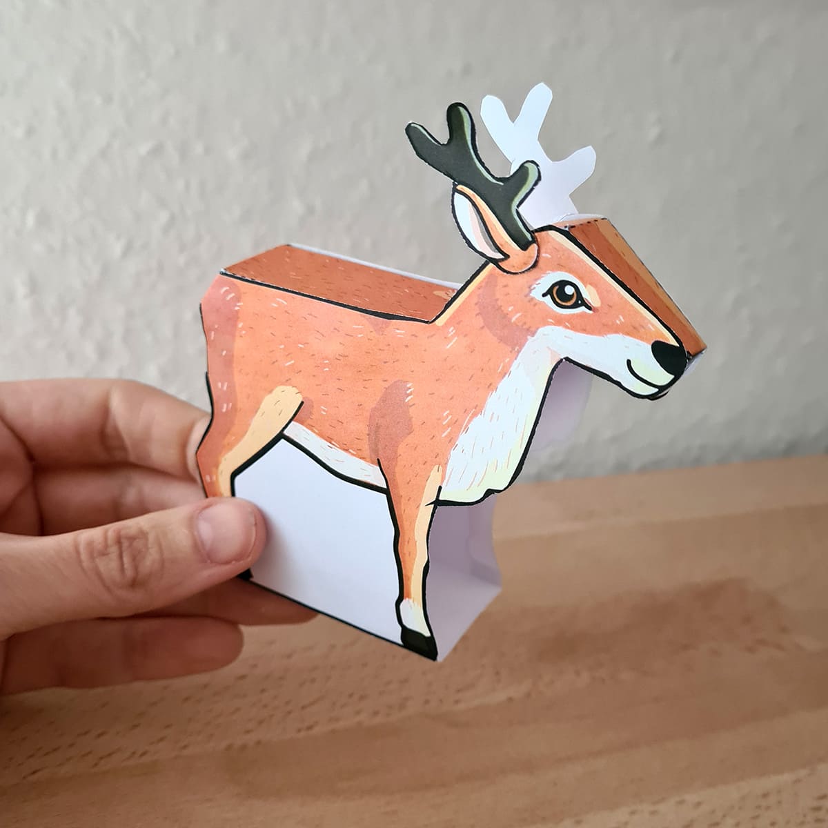 Bastelvorlage zum Basteln eines süßen Rentieres, zum Spielen oder als selbstgemachte Weihnachtsdekoration.