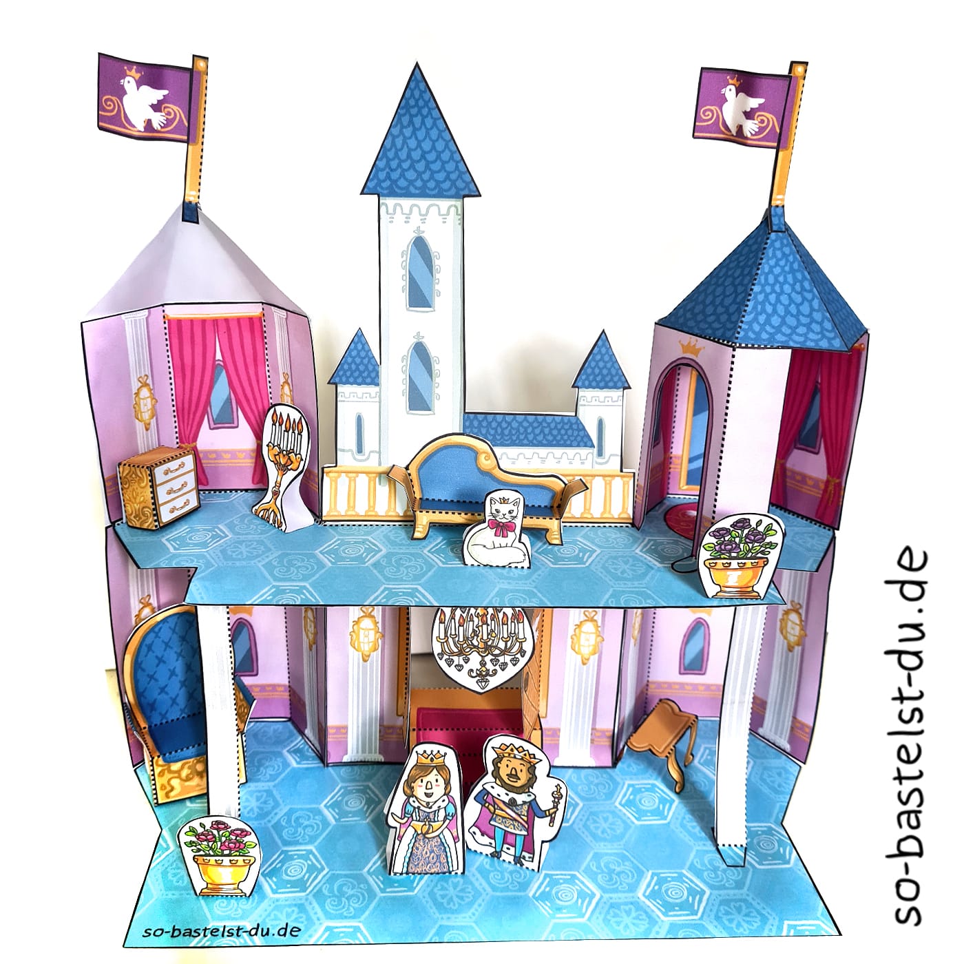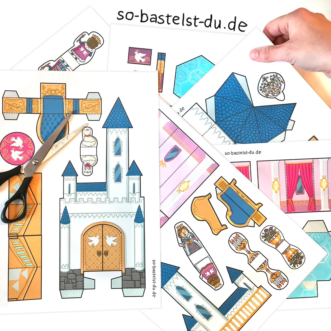 Der 6-seitige Bastelbogen „Schloss Taubenstein“ (zum Selbstausdrucken) beinhaltet: