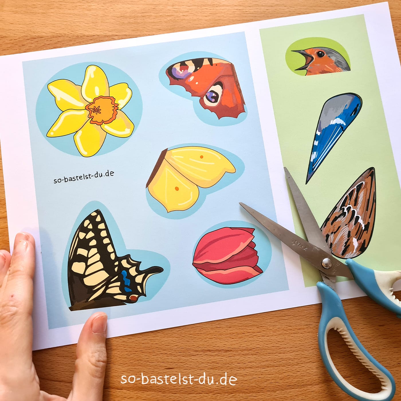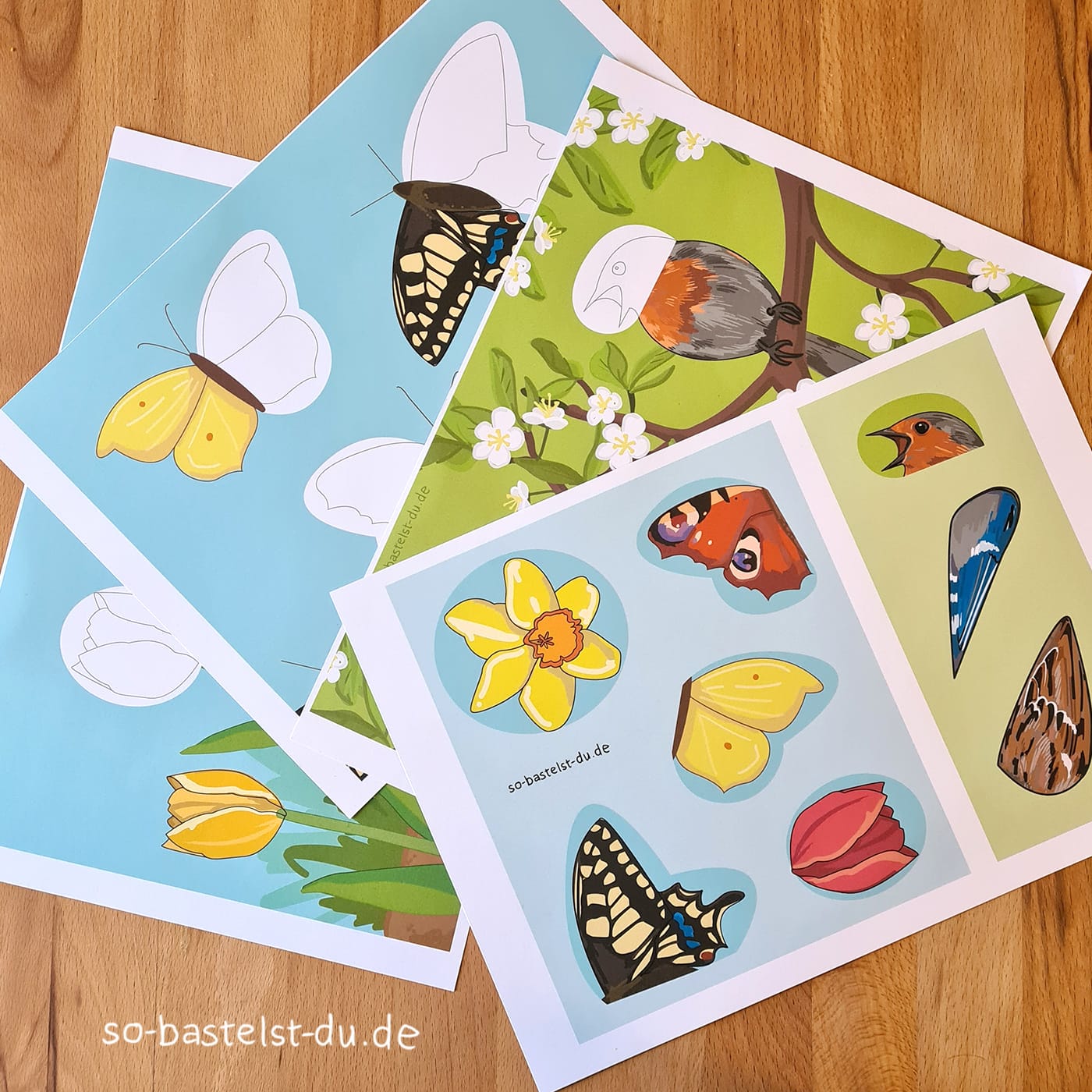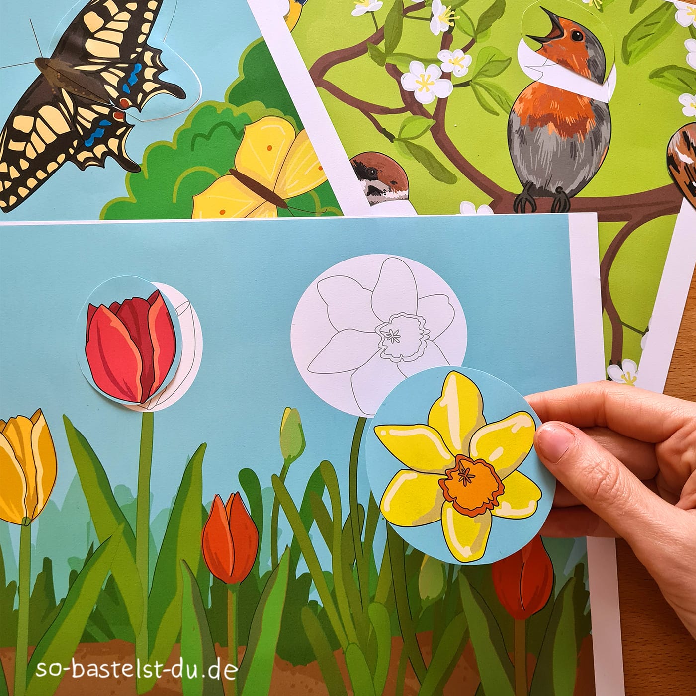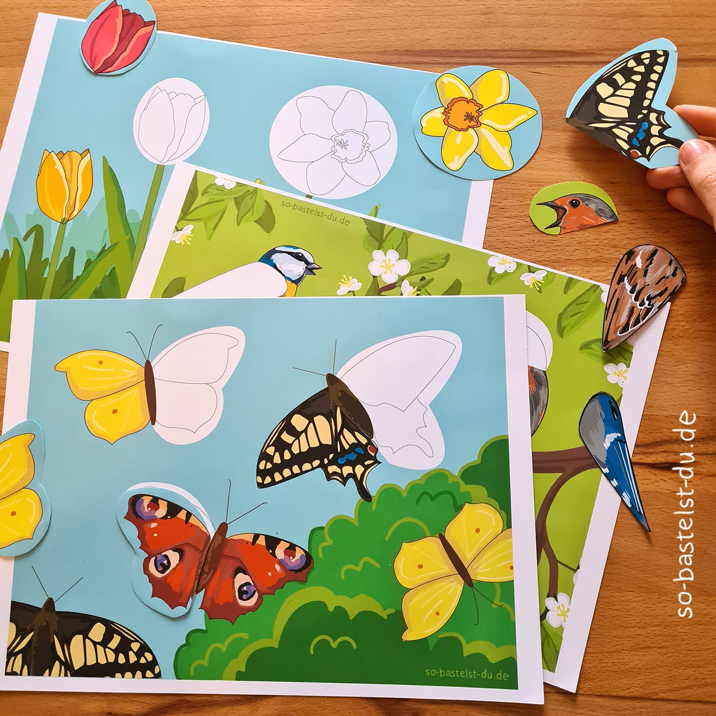 Ausdrucken, ausschneiden und aufkleben für kleine Bastelstarter mit tollen Frühlingsmotiven.