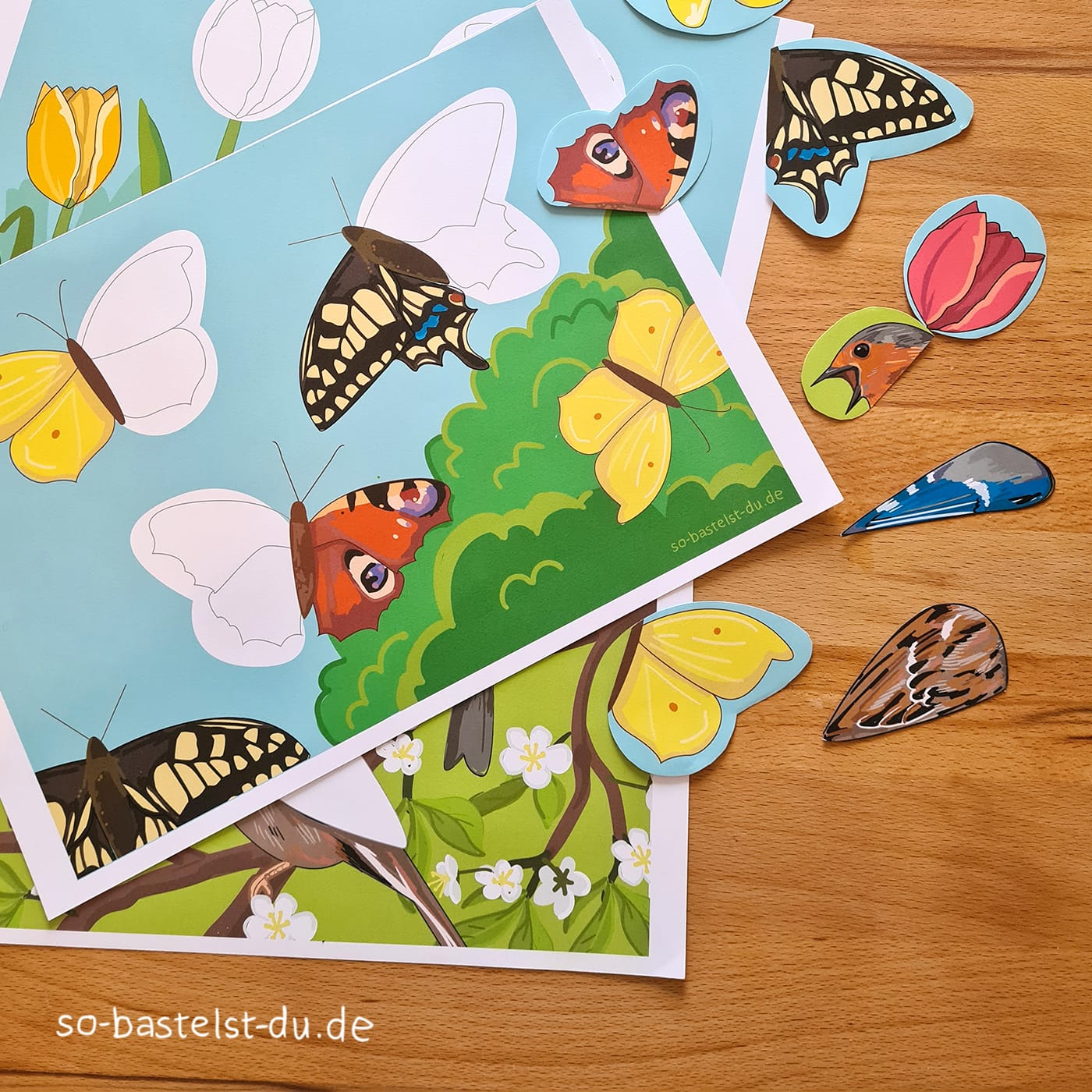 Na, sind alle Schmetterlingsflügel, Vogelteile und Blumen aufgeklebt? Freut euch zusammen über die fertigen Kunstwerke und überlegt, was ihr damit machen möchtet. Vielleicht könnt ihr die Bilder schön rahmen und als Frühlingsdekoration aufhängen? Oder ihr lasst eure kleinen Künstler die Bilder verschenken. Dann darf aber natürlich eine kleine oder große Signatur nicht fehlen.
